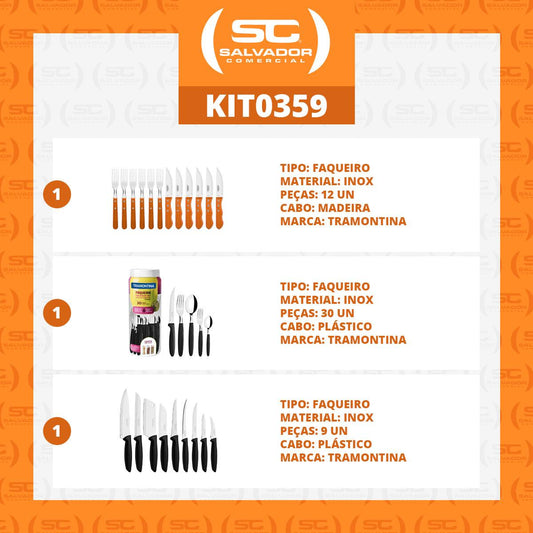 --Fornecedor:Kit - Jogo de Churrasco Inox 12 Peças + 1 Faqueiro 30pç + 1 Conjunto Facas 9pç - TramontinaTRAMONTINAPreço normal R$ 341,60 12x de R$ 28,46 sem jurosPreço normalPreço unitário / por