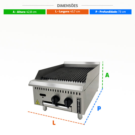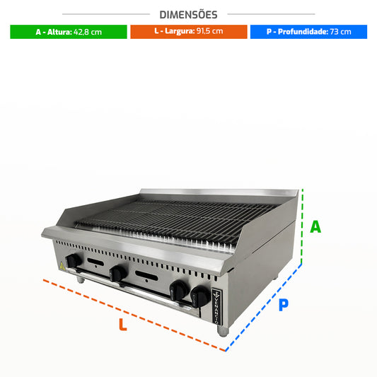 --Fornecedor:Chapa Grill Char Broiler Profissional Industrial Prime a Gás 90cm PCG090G - VenâncioVENANCIOPreço normal R$ 4.300,56 12x de R$ 358,38 sem jurosPreço normalPreço unitário / por