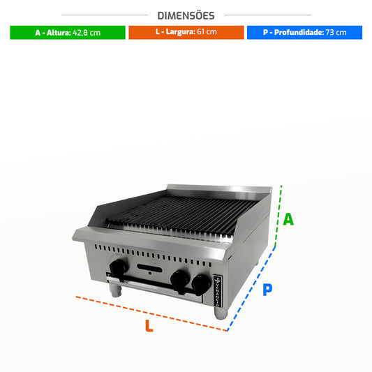 Fornecedor:Chapa Char Broiler Americana Profissional Grill Churrasqueira 60cm Gás Inox Com Pé Cggp60 - VenâncioVENANCIOPreço normal R$ 4.632,92 12x de R$ 386,07 sem jurosPreço normalPreço unitário / porPreço promocional R$ 4.632,92 12x de R$ 386,07 sem jurosR$ 4.262,29 Boleto e pix 8% desconto -
