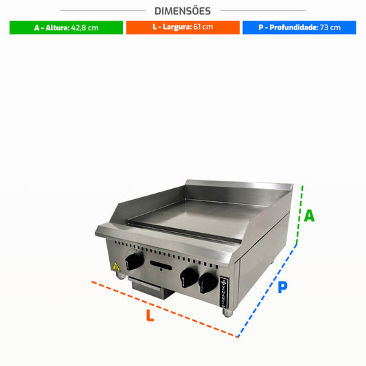 --Fornecedor:Chapa Char Broiler Americana Profissional Grill 60cm Gás Inox Cgg60 e Utensílios - VenâncioVENANCIOPreço normal R$ 3.356,18 12x de R$ 279,68 sem jurosPreço normalPreço unitário / por