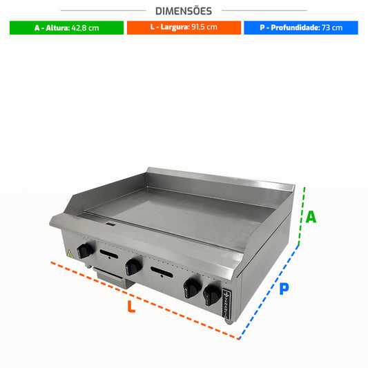 --Fornecedor:Chapa Bifeteira Profissional Industrial Prime a Gás 90cm PCM090G 8mm - VenâncioVENANCIOPreço normal R$ 3.368,22 12x de R$ 280,68 sem jurosPreço normalPreço unitário / por