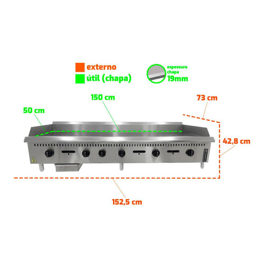 --Fornecedor:Chapa Bifeteira Profissional Industrial Prime a Gás 120cm Pcm120g 19mm - VenâncioVENANCIOPreço normal R$ 6.231,28 12x de R$ 519,27 sem jurosPreço normalPreço unitário / por