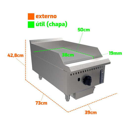 --Fornecedor:Chapa Bifeteira Profissional Industrial Prime a Gás 60cm PCM060G 19mm - VenâncioVENANCIOPreço normal R$ 3.366,70 12x de R$ 280,55 sem jurosPreço normalPreço unitário / por