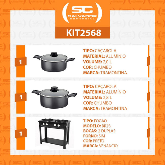 --Fornecedor:Fogão Industrial 2 Bocas com Forno Bravo Preto Venâncio + 2 Caçarolas Tramontina TurimVENANCIOPreço normal R$ 1.704,43 12x de R$ 142,03 sem jurosPreço normalPreço unitário / por